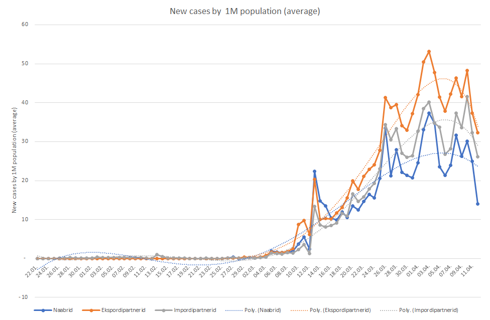• Uute juhtumite arv päevas on enamuses vaadeldud riikides juba mõni päev, nädal või isegi rohkem stabiilne.