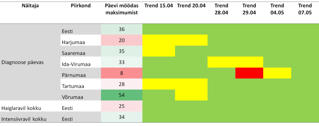 Punane – kasvab, kollane – stabiilne, roheline – langeb