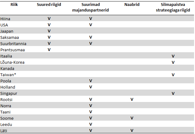 Eesti majandus on tihedalt seotud teiste riikidega läbi ekspordi ja impordi. Üldist meeleolu maailmas kujundab haigestumiste koguarv, kuid majanduskasv sõltub eelkõige suurte majanduste käekäigust. Seega on vaja jälgida, kuidas läheb meie naabritel, meie majanduspartneritel ja suurtel majandustel. Panin kokku riikide loetelu, keda tuleks jälgida.