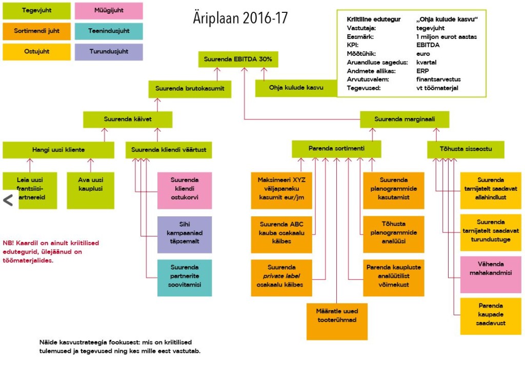 - Selgus sellest, millisel tegevusel on suurim mõju eesmärgi saavutamise mõttes (kriitilised edutegurid) ehk milline on tegevuse fookus.
